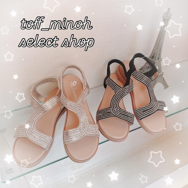 人気 ビジューサンダル ゴムストラップ キラキラ