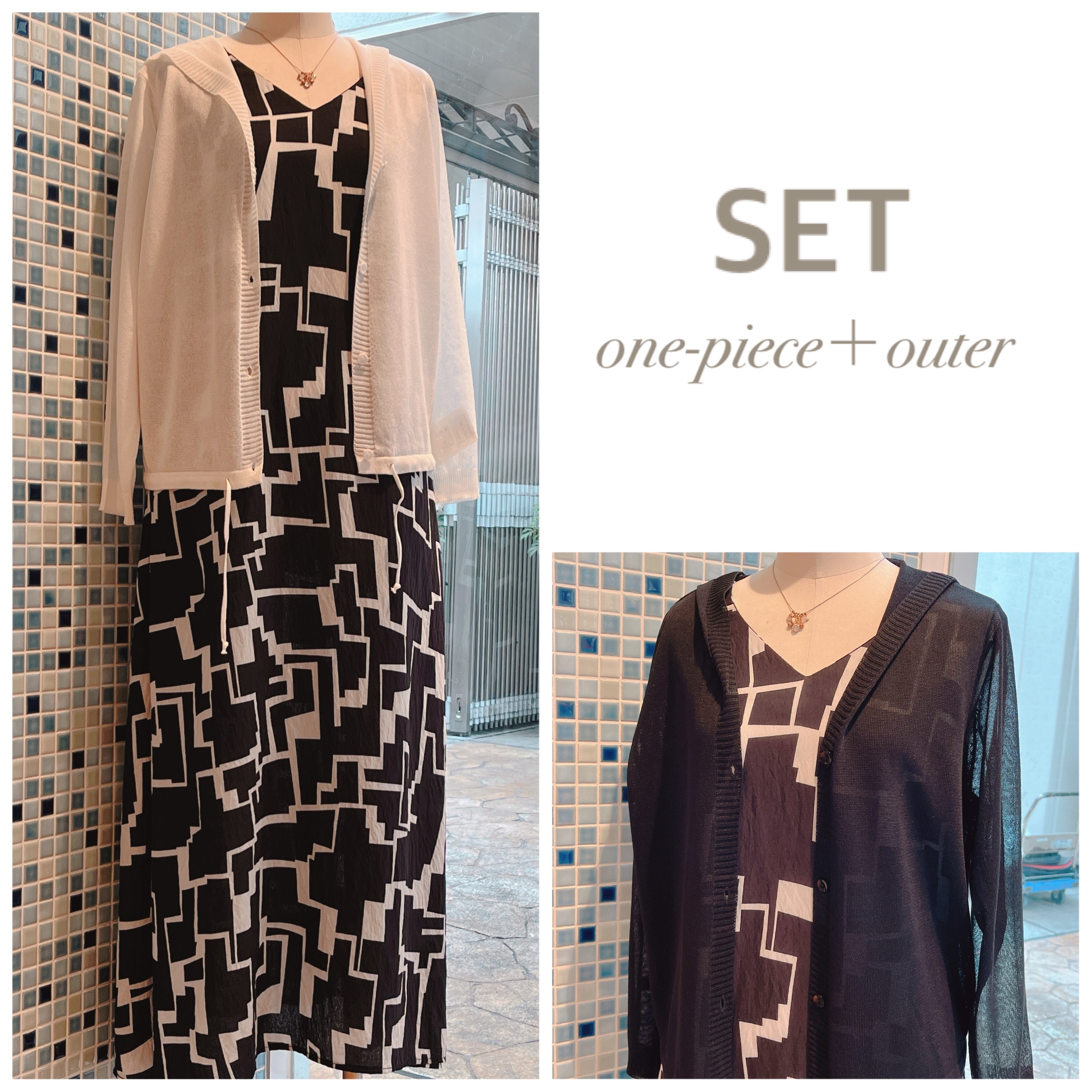 SALE【SET商品】総柄ワンピース+メッシュパーカー ノースリーブ ロング フード Vネック