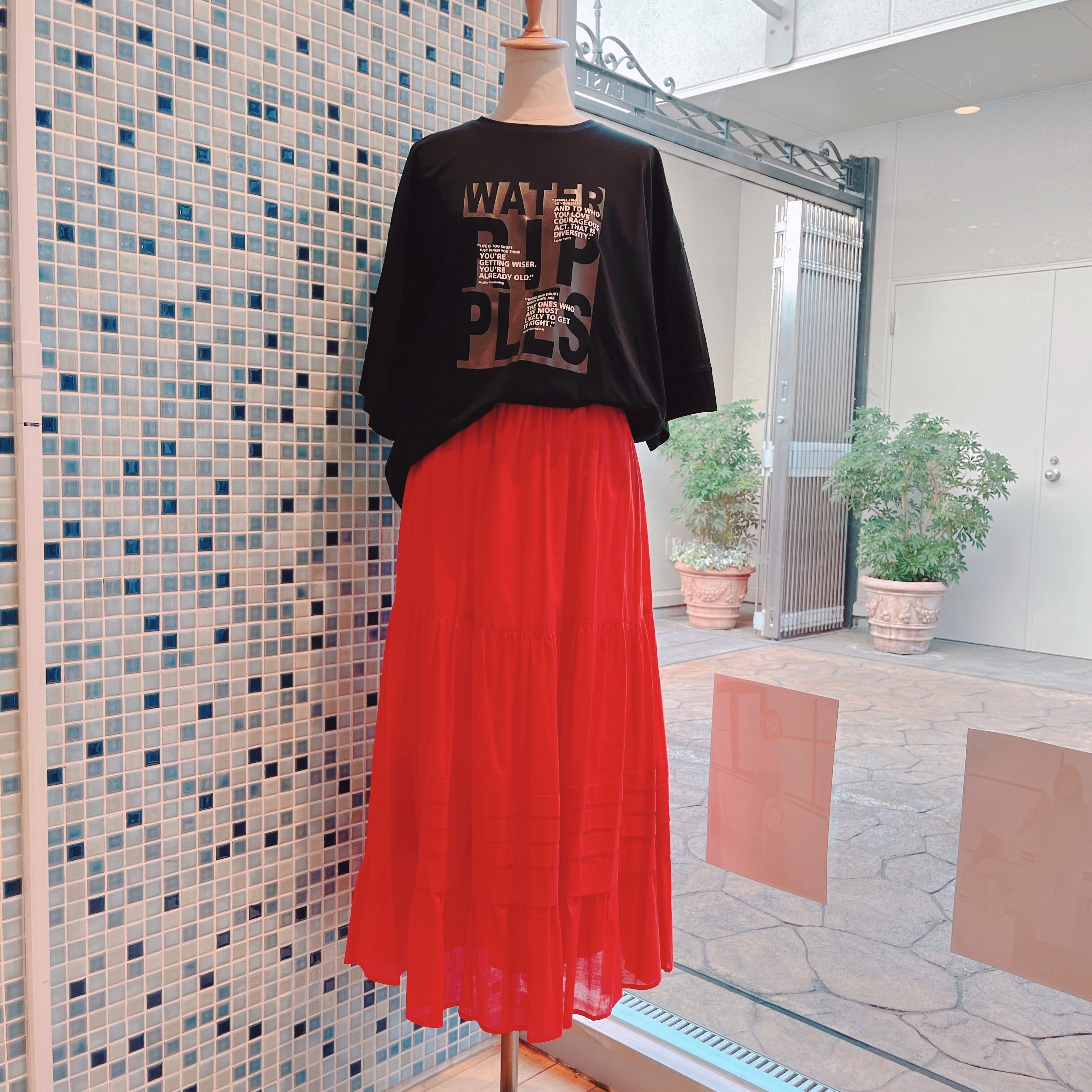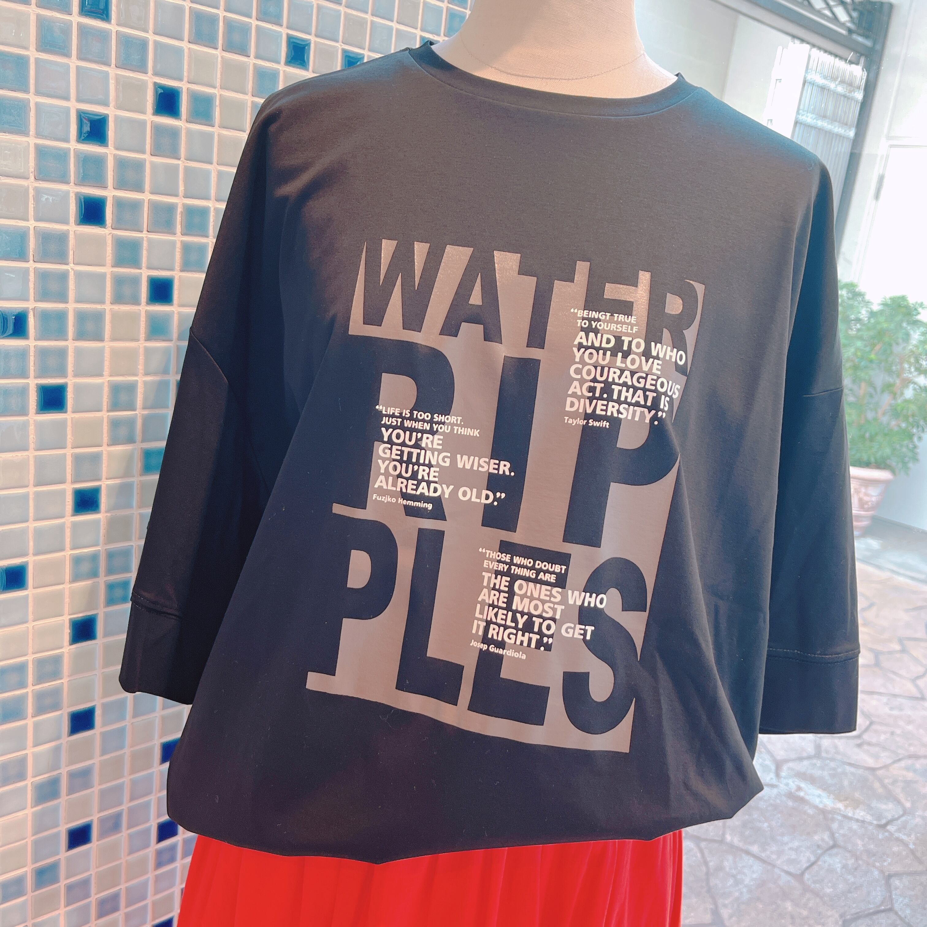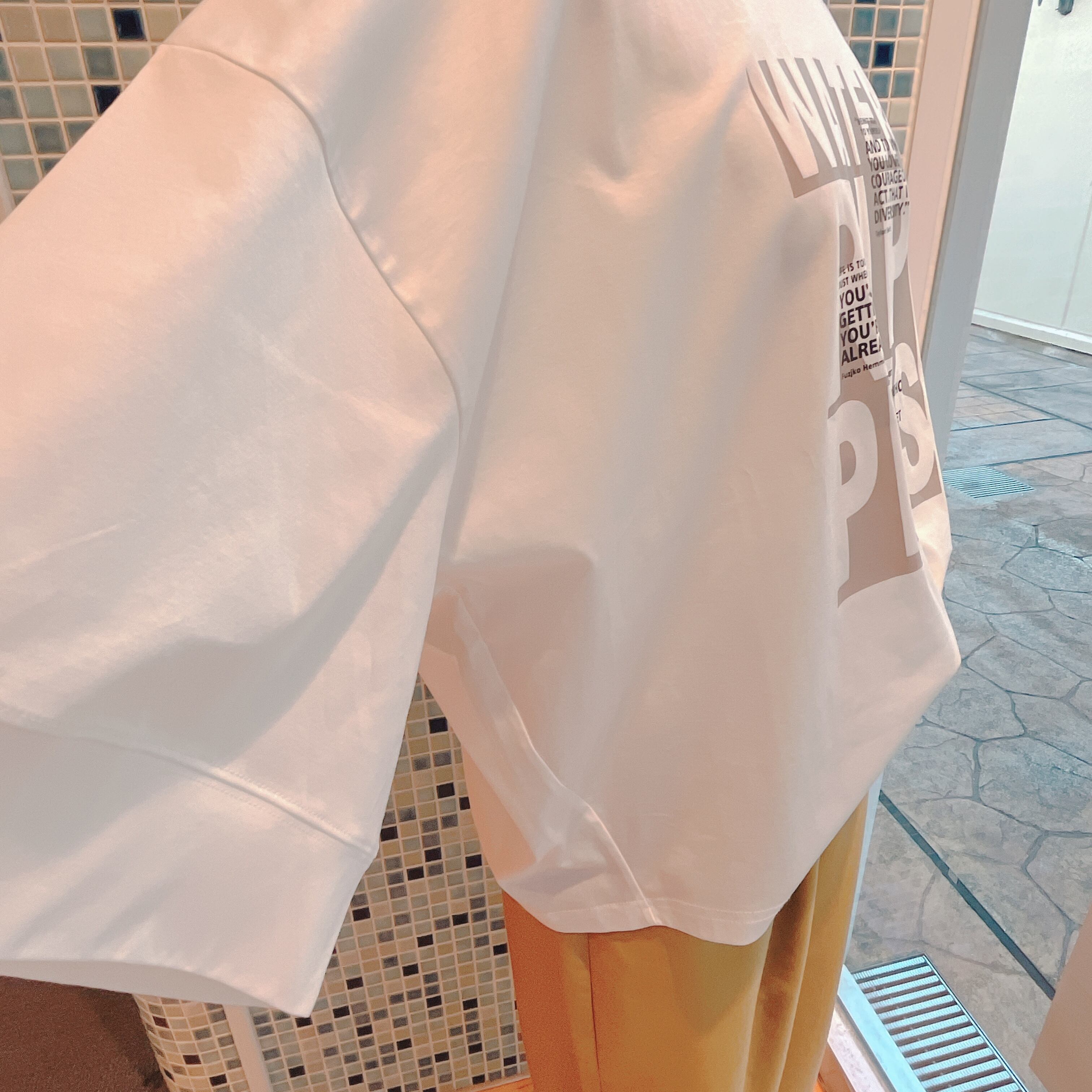 ゆったりながら着丈は長すぎない絶妙なデザインのロゴTシャツ