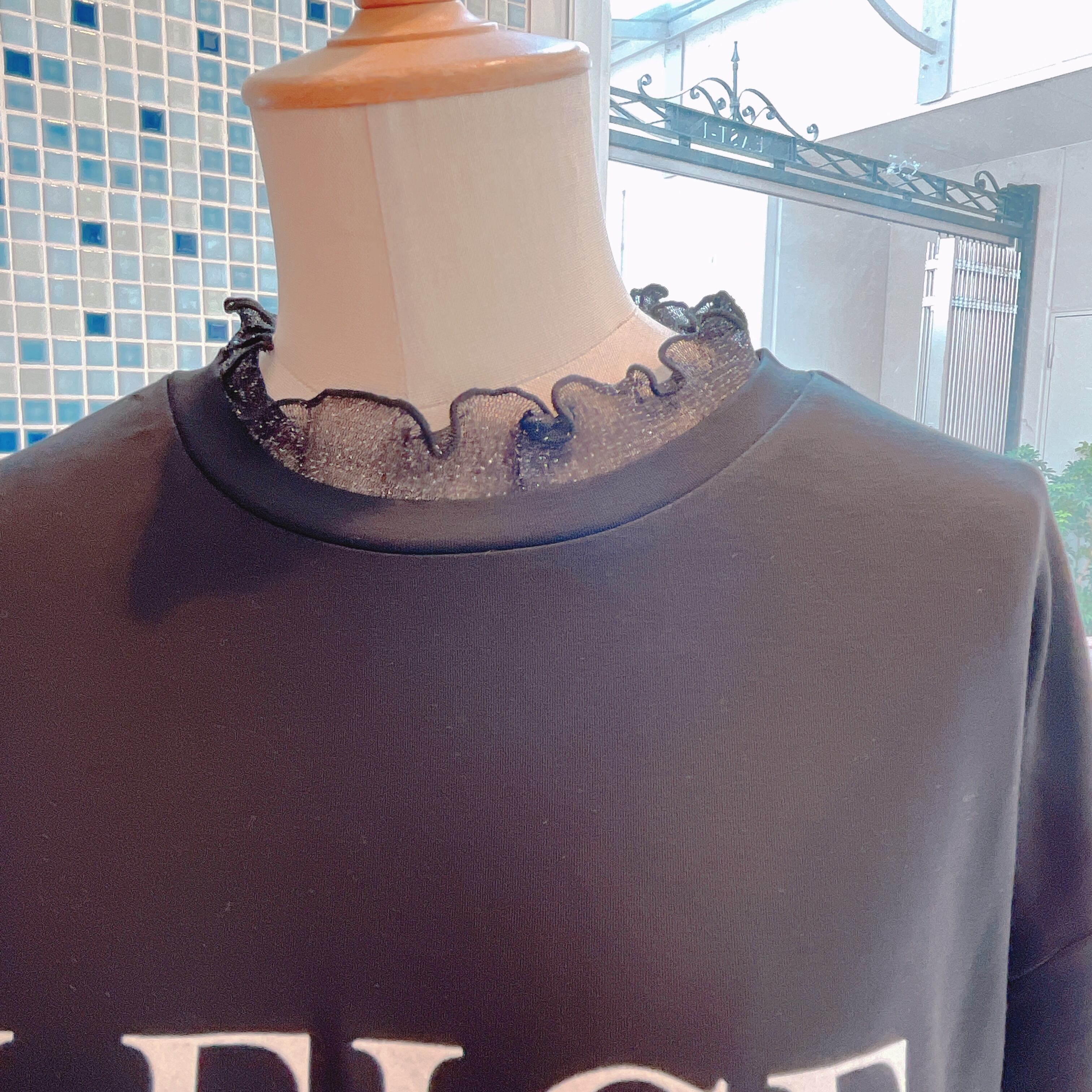 シンプルなロゴTシャツに手元・首元のシアーラメがポイントです