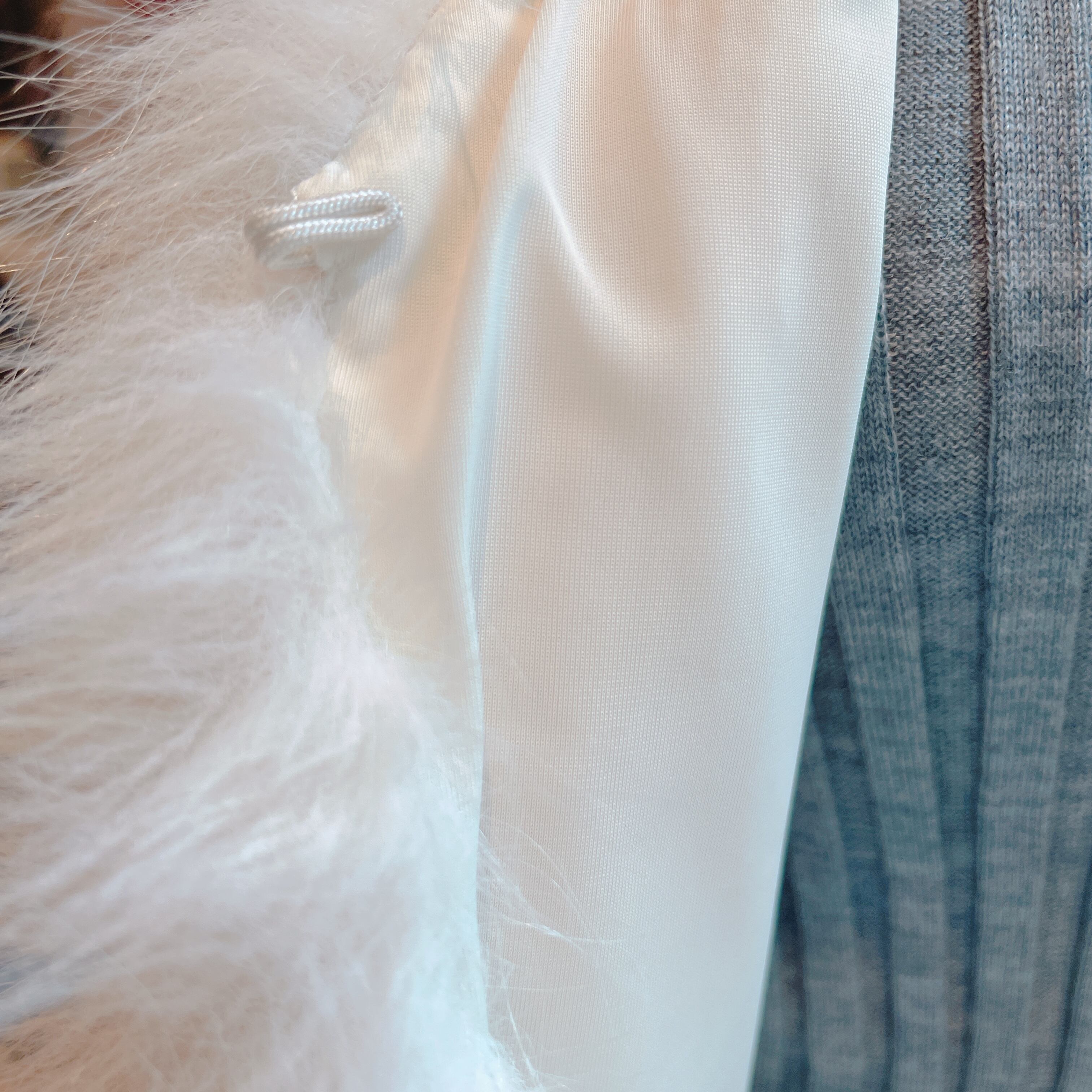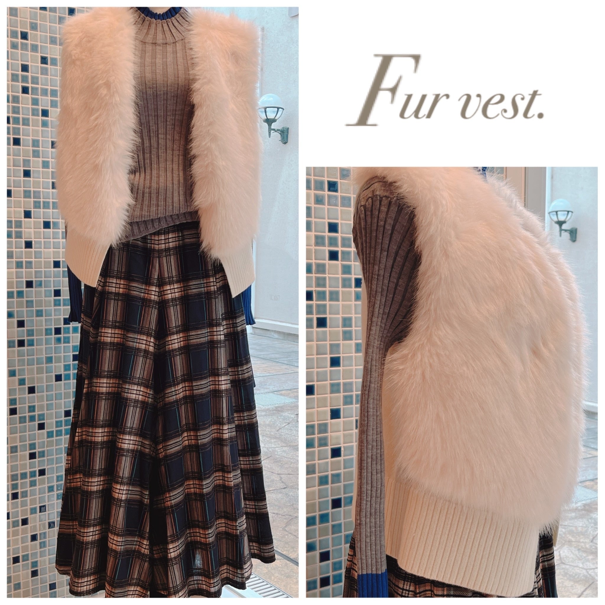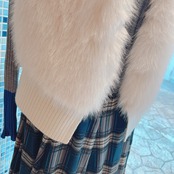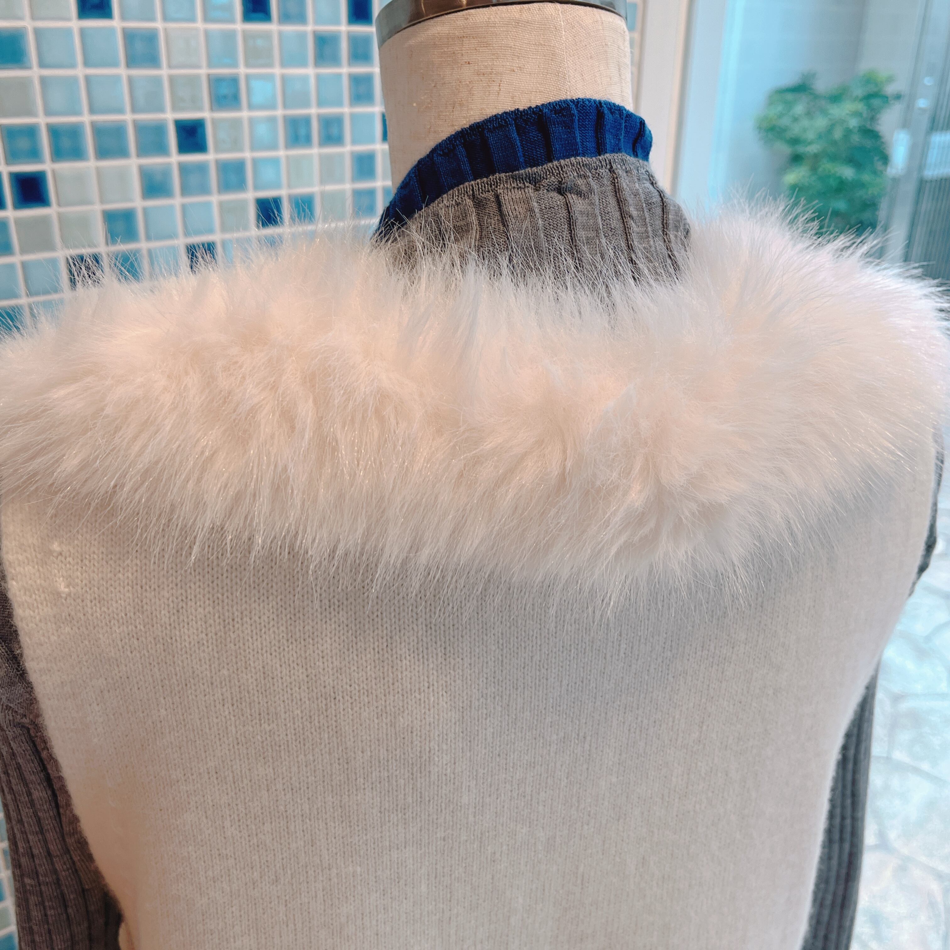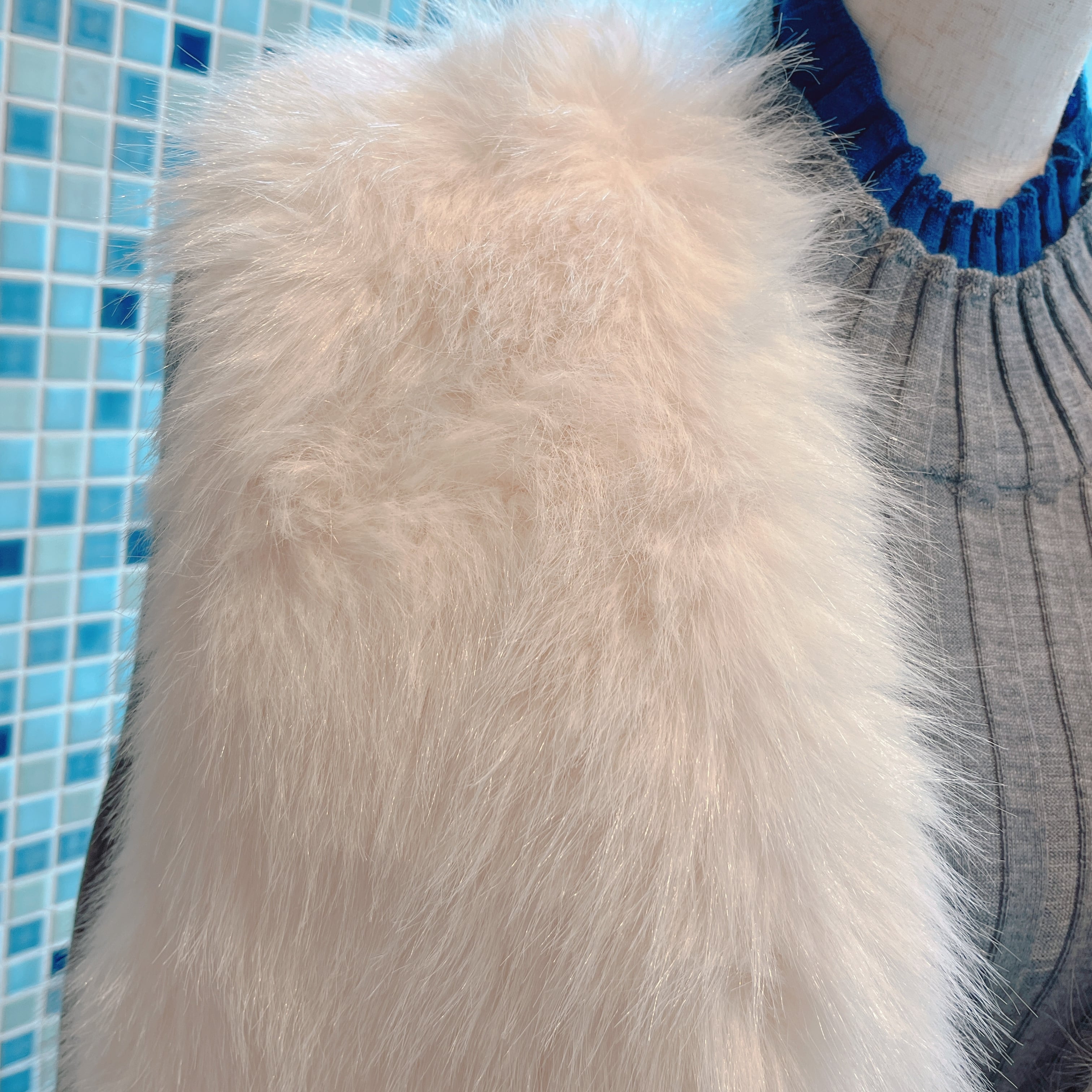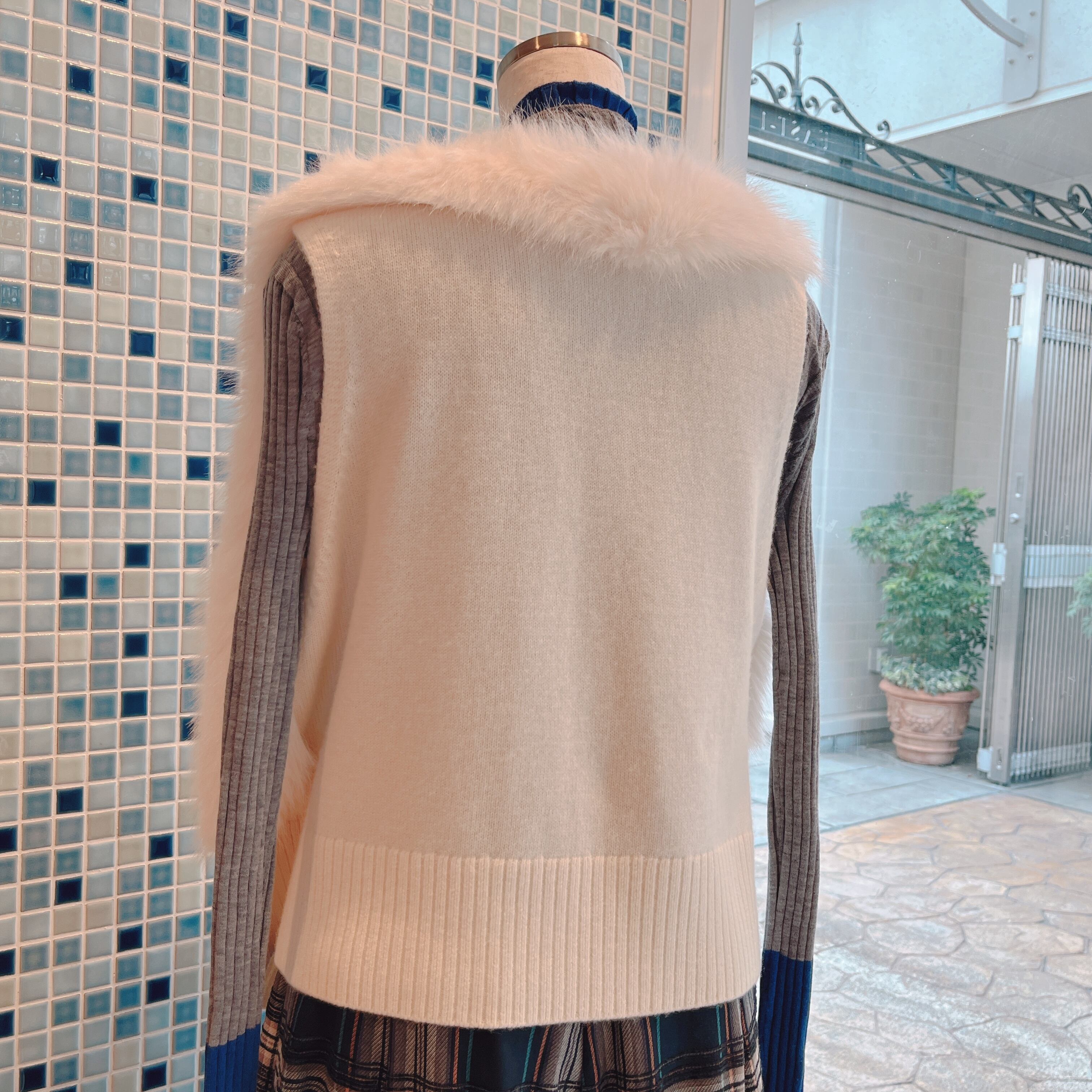 毛足が長めのホワイトカラーが華やかな印象のファーベスト