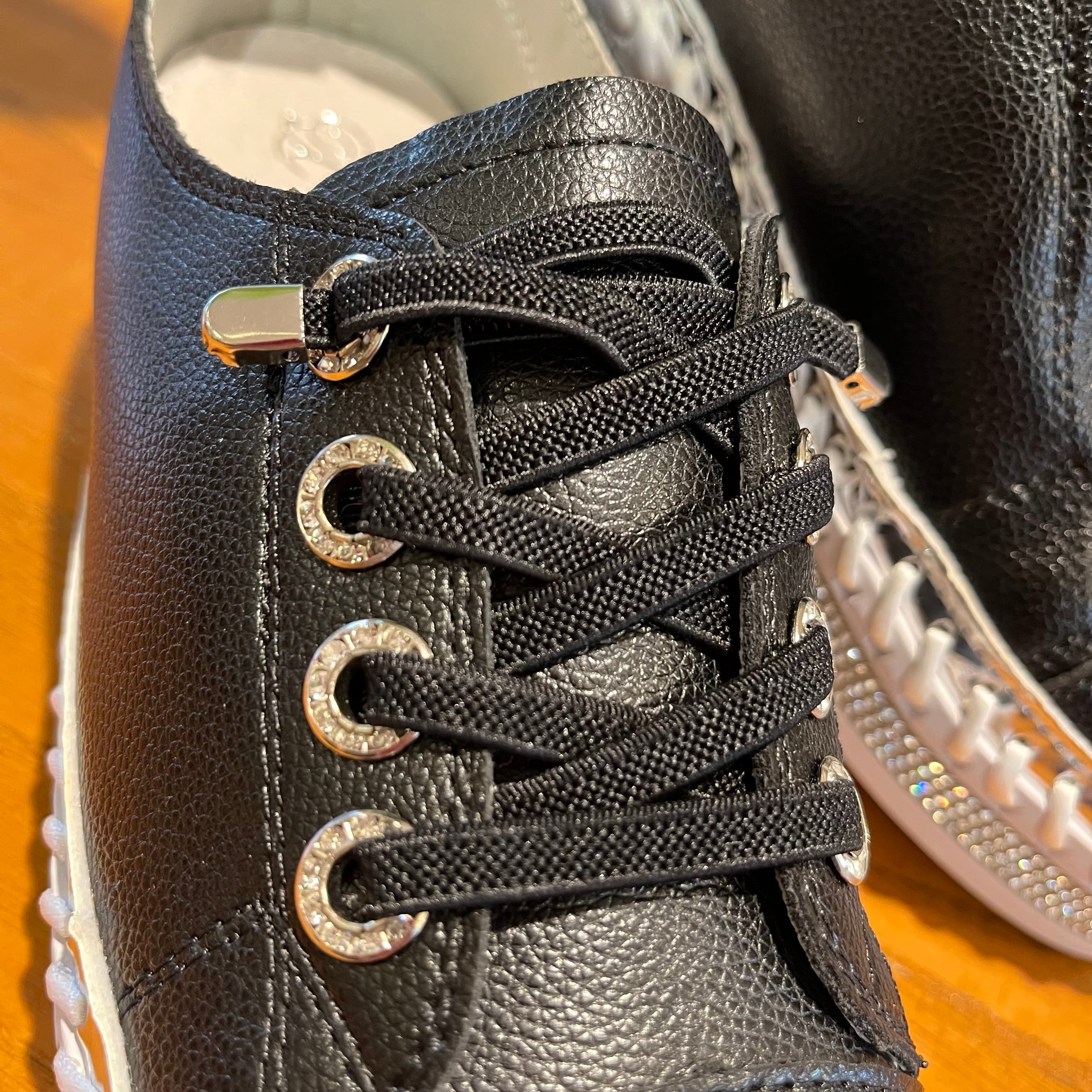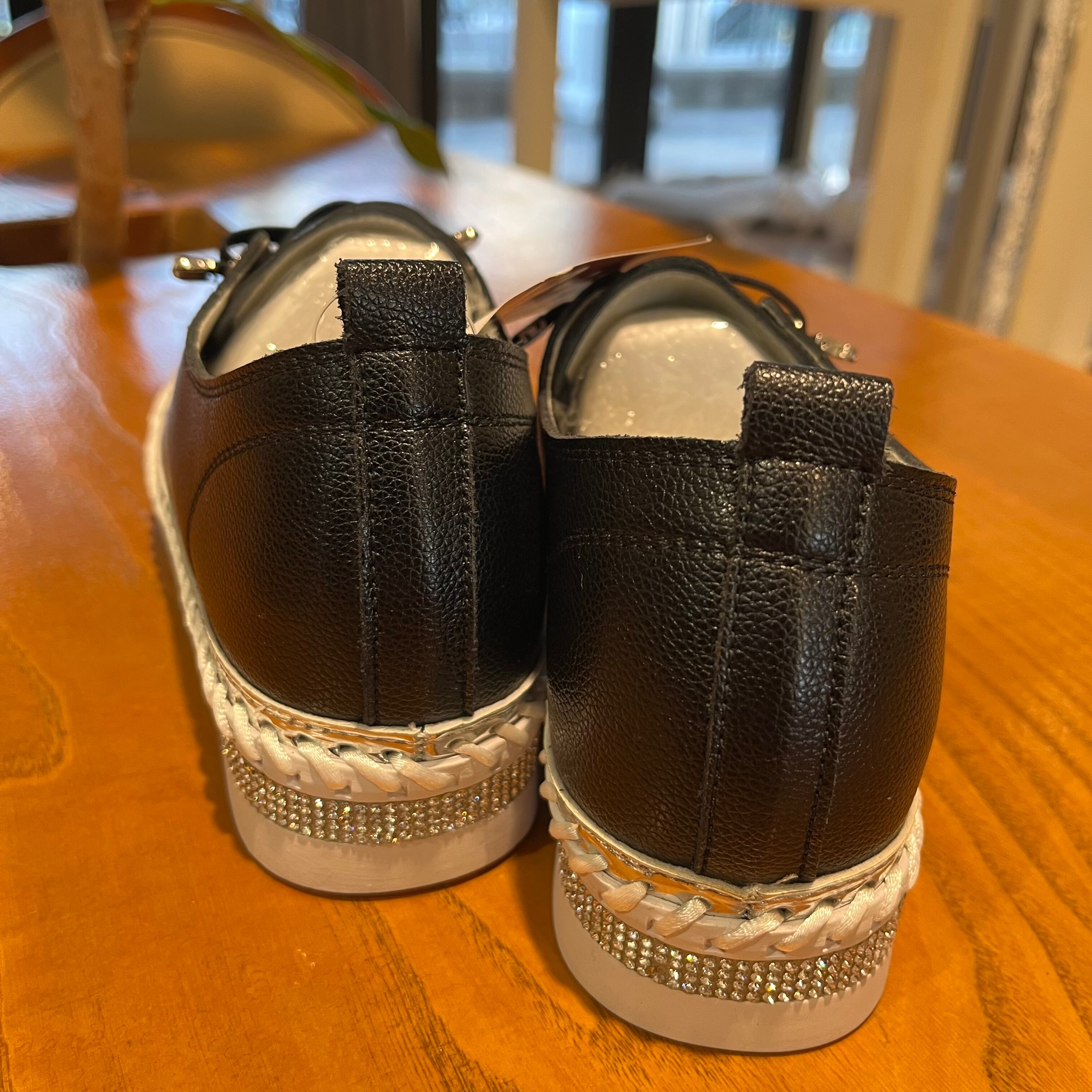 NEW‼︎ラインストーンスニーカー エコレザー ブラック ホワイト 厚底 シンプル