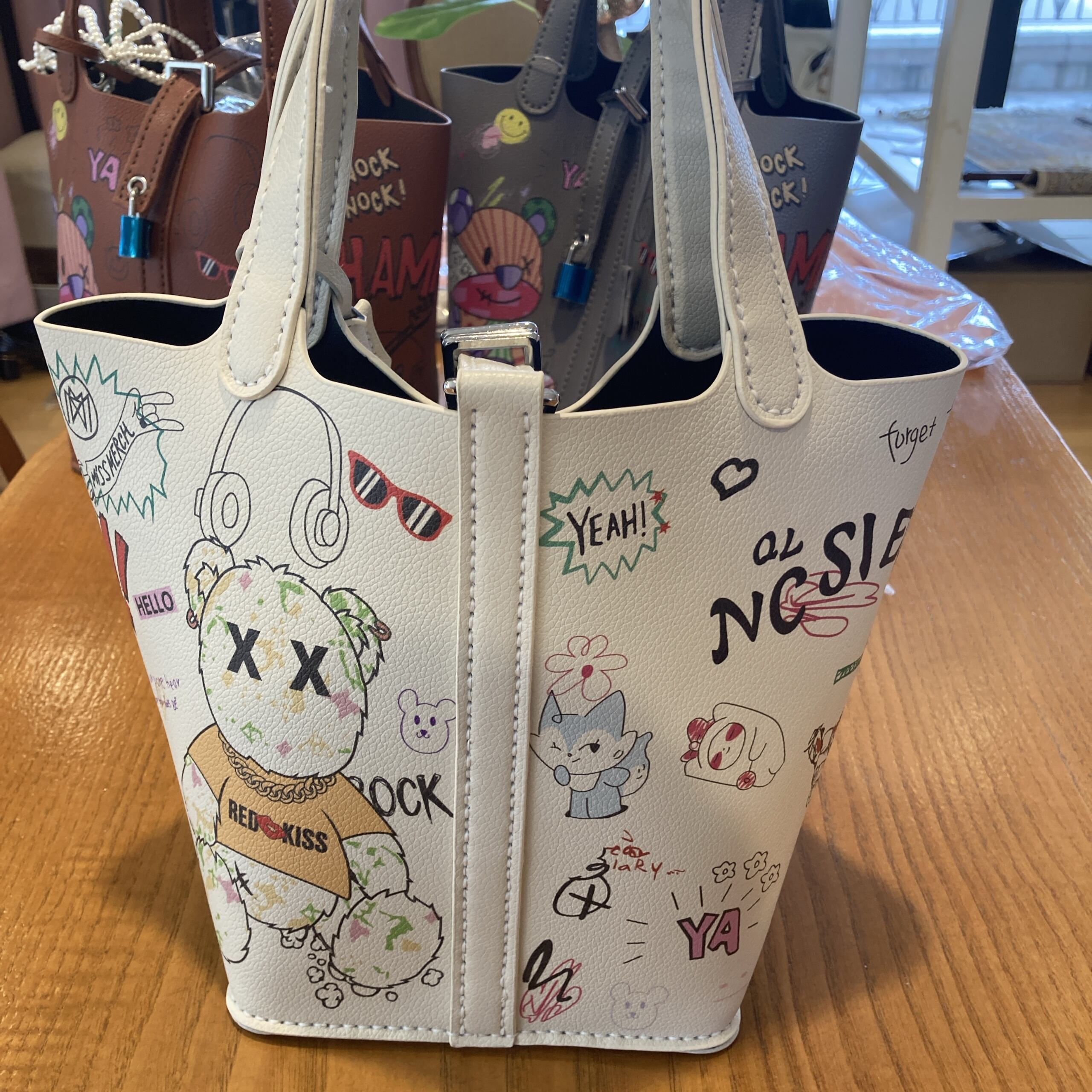 可愛らしいくまちゃんがペイントされた、魅力的なバッグの登場です!「くまちゃんペイントバッグ」は、デイリーユースにぴったりなマチ付きデザインで、しっかりとした容量を誇ります。普段使いはもちろん、お出かけや特別な場面にも合わせやすい一品です。