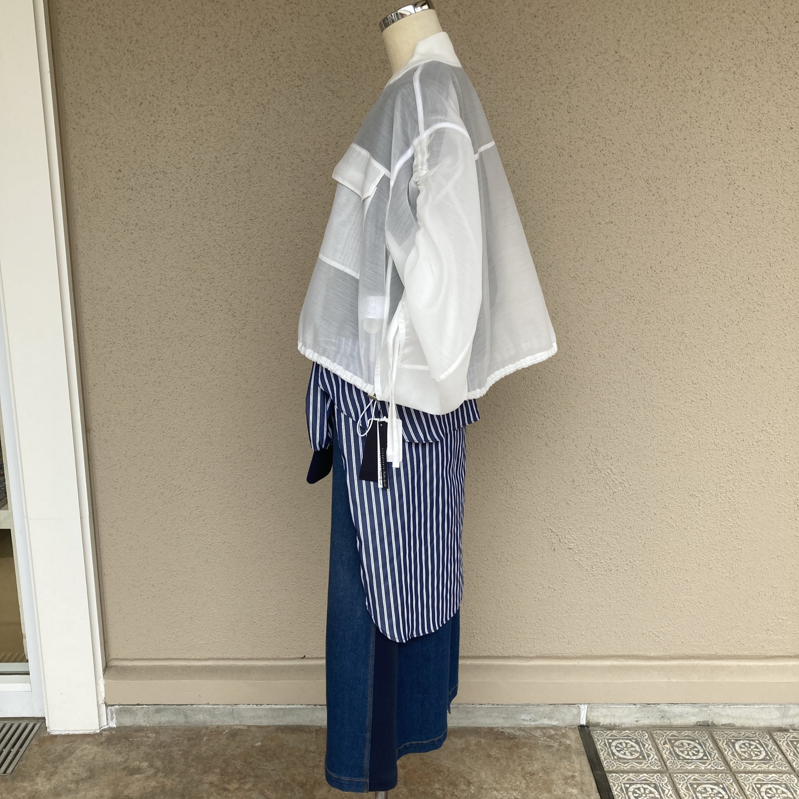 前身頃の丈が短めなので、ワイドパンツやロングスカートとの相性抜群!