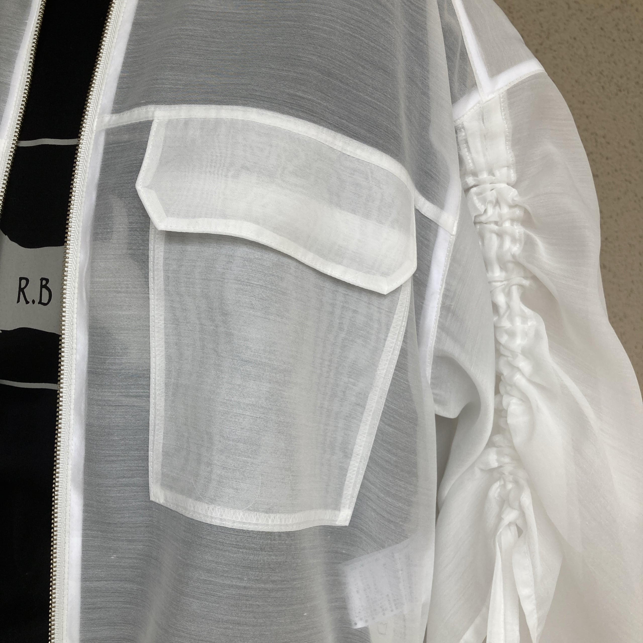 魅力的なシアー素材と袖のシャーリングデザインが特徴のローブの袖シャーリングシアーブルゾン。軽やかでエレガントな印象を与え、どんなスタイルにも合わせやすいアイテムです。透け感が程よく、コーディネートのアクセントとしても大活躍します。