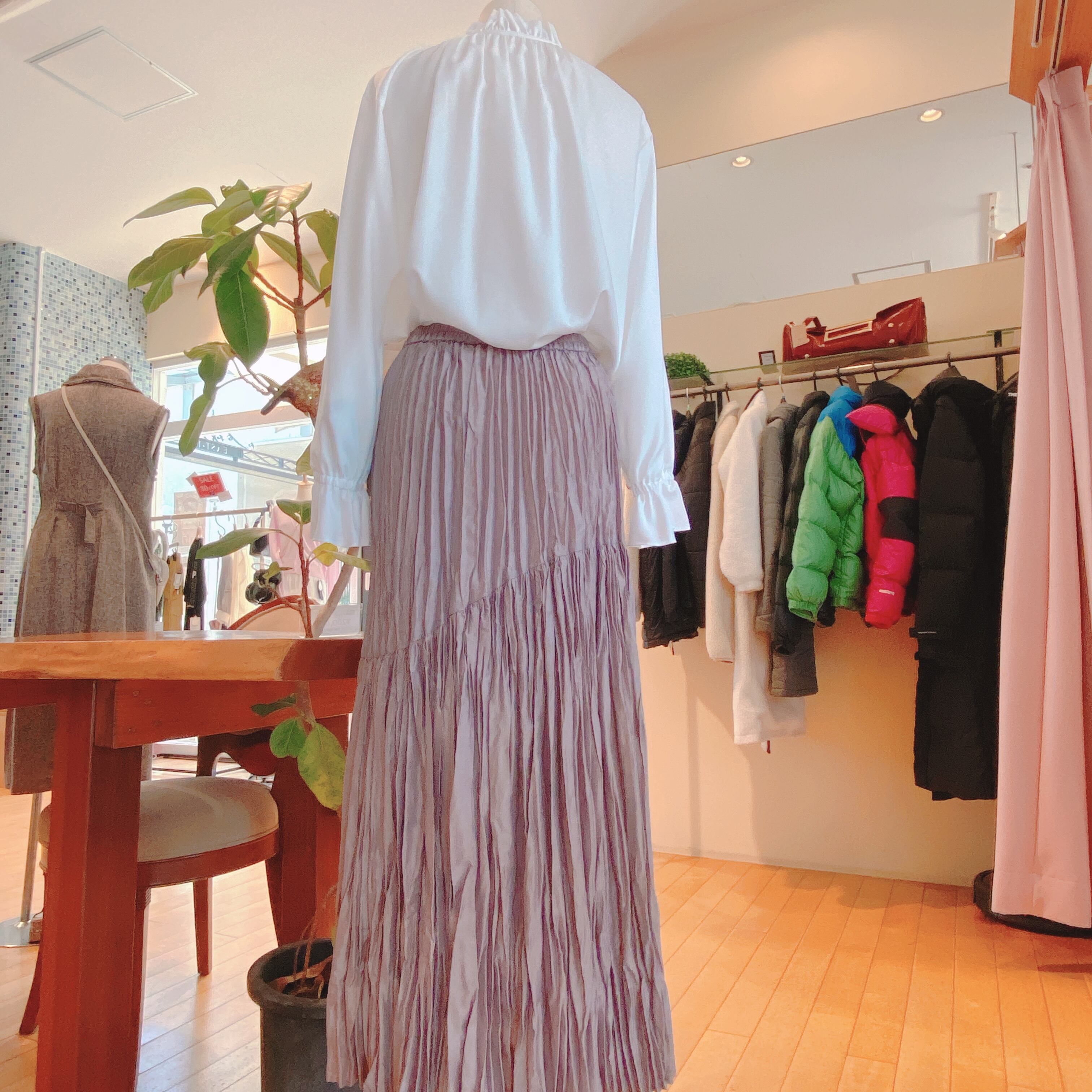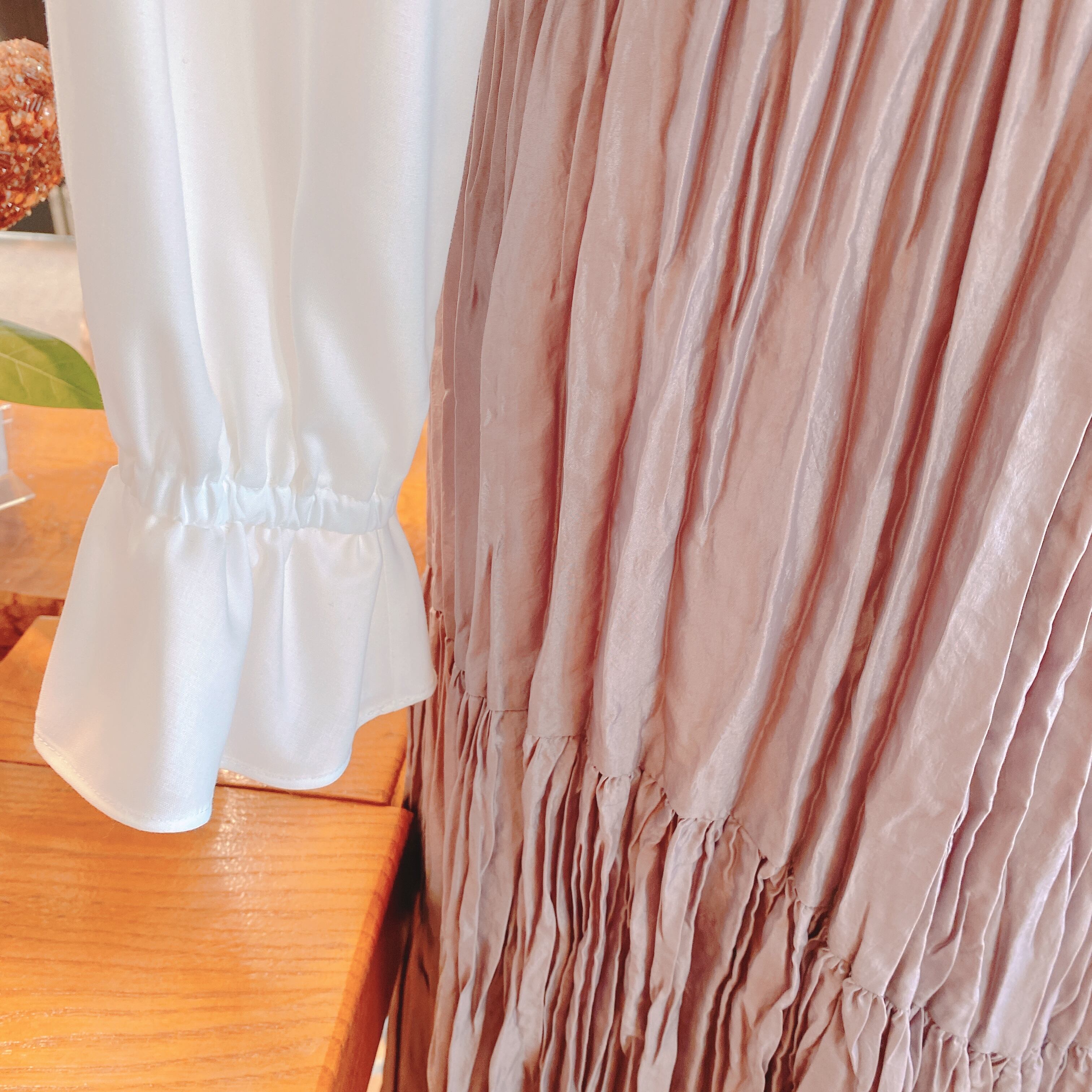 上品なフリルにシワになりにくいサラッとした生地が高級感を演出し多様なシーンで着用できる優秀アイテム