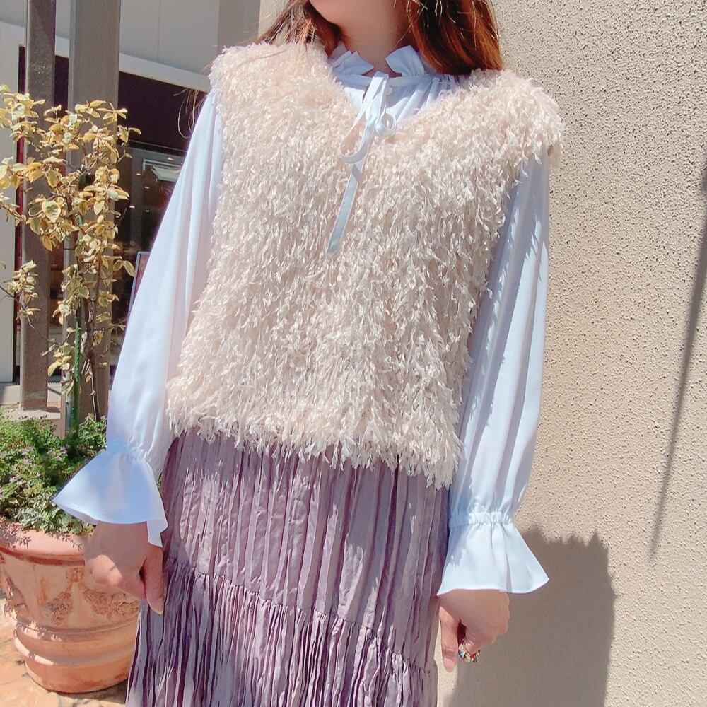 ジャケット・ジレ・ニットなどに首周りや袖のフリルを覗かせるレイヤードスタイルにもおすすめです