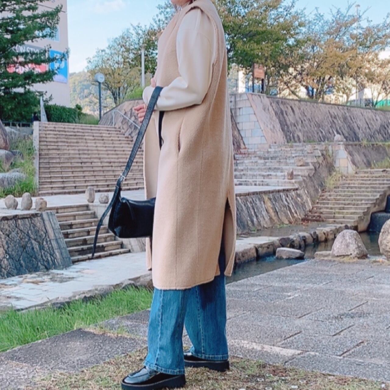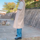 ボアファーとスウェードのリバーシブルで着用できるエコムートンロングジレ